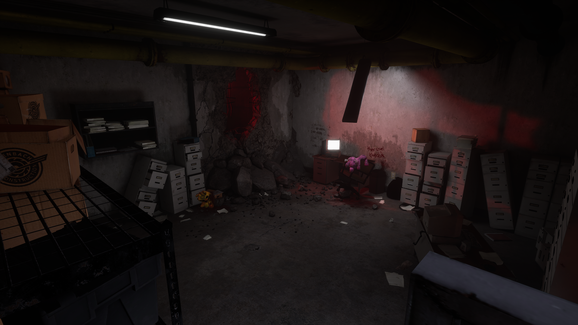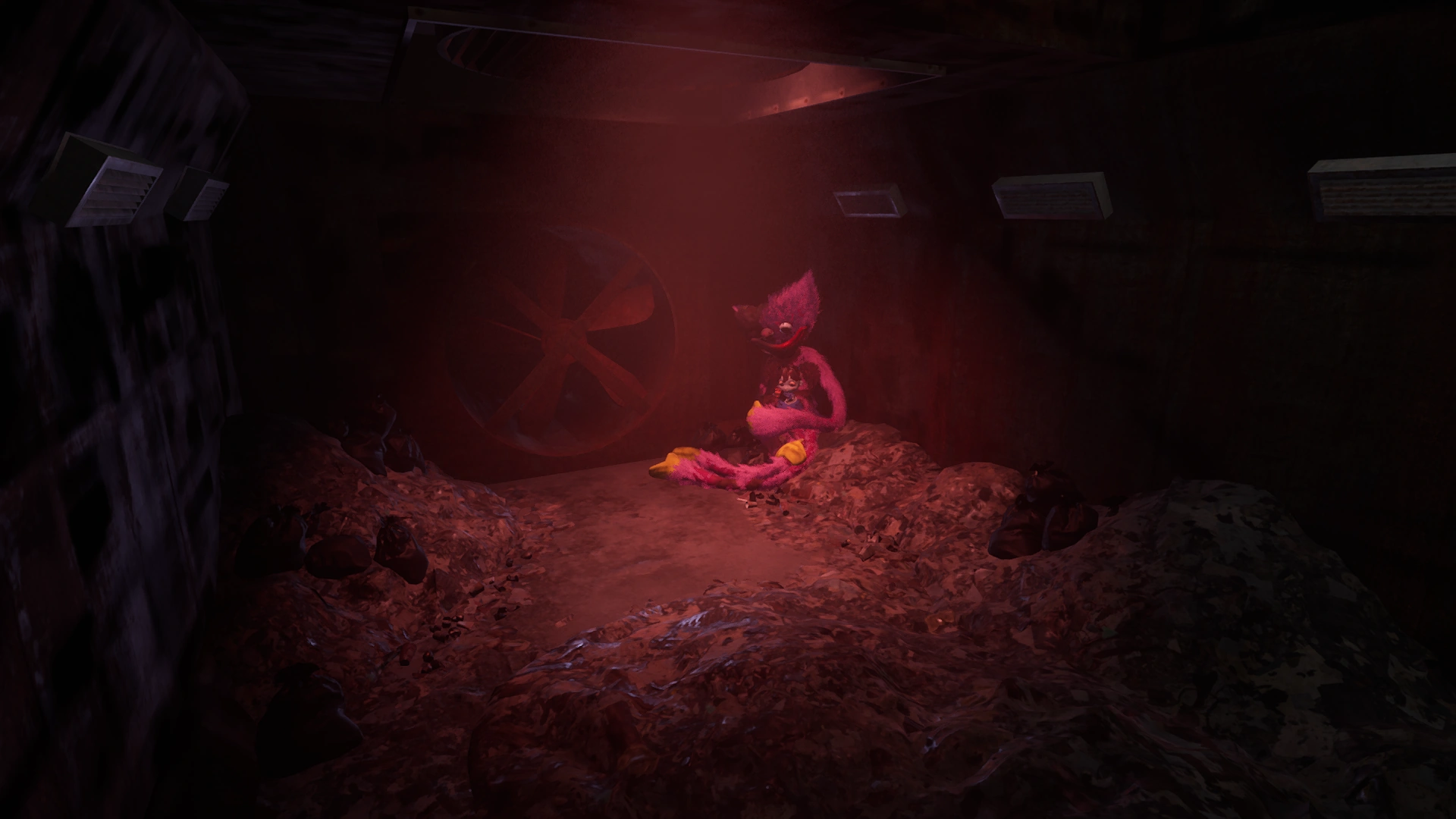 A secret room that can be accessed after pushing a slightly exposed vent door in Elliot Ludwig's Office. The room contains a variety of abandoned utilities that cannot be used. | Poppy Playtime |