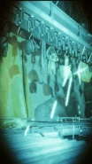 - When the creature is electrocuted, the Unnamed White Voodoo Doll appears as an easter egg in the upper right corner.