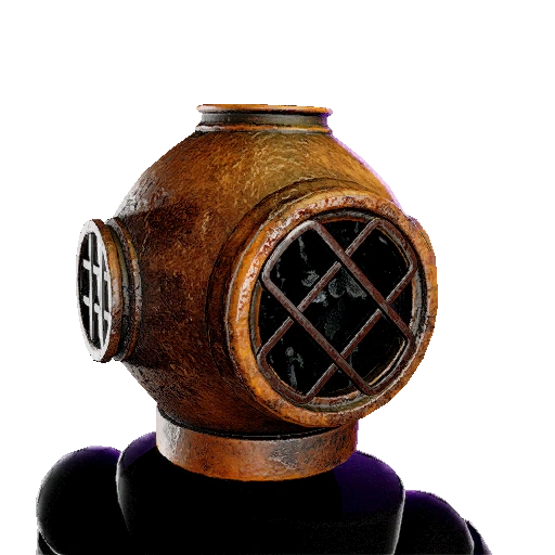 A hat advertised alongside the Scuba Outfit, featuring a brown scuba helmet overgrown with bruises and rust. |