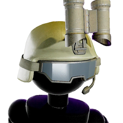 A hat advertised alongside the Soldier Outfit, featuring a heavy-duty army helmet. A microphone, binoculars, and visor can be scrutinized. |