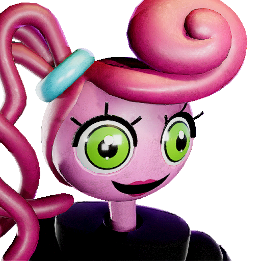 A hat advertised alongside the Mommy Long Legs Outfit, featuring a glossy version Mommy Long Legs' head, with nearly all features present. |