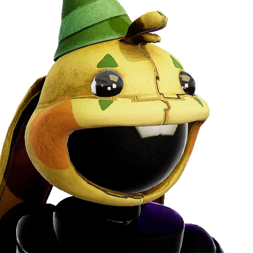 A hat not affiliated with any Outfit, featuring a Jack-O-Lantern having a carved, wicked smile glowing of yellow. |