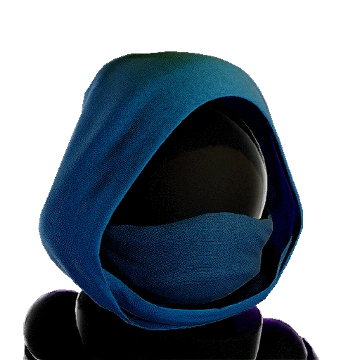 A hat advertised alongside the Ninja Outfit, featuring a blue ninja hood, with a blue mask also covering most facial features. |