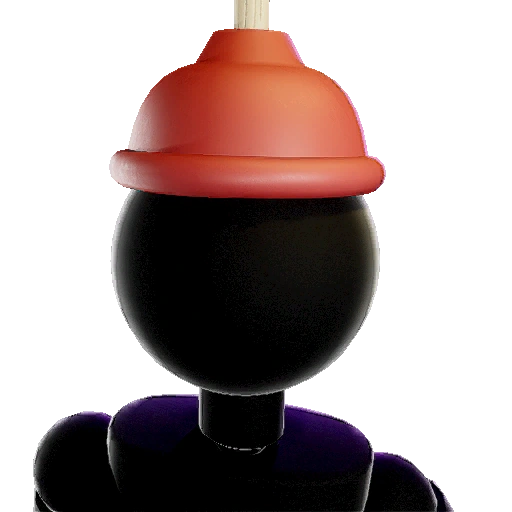 A hat not affiliated with any Outfit, featuring a red plunger stuck on a Specialist's upper-head. |