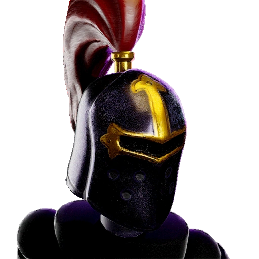 A hat advertised alongside the Knight Outfit, featuring a black knight helmet with golden supports alongside a crimson plume. |