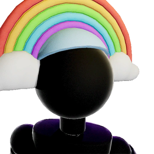 A hat not affiliated with any Outfit, featuring a rainbow with two small clouds. |