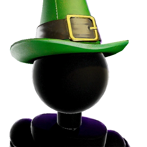A hat advertised alongside the Leprechaun Outfit, featuring a green witch-like hat, with a black strap and a gold buckle, alongside a four-leaf clover poking out. |