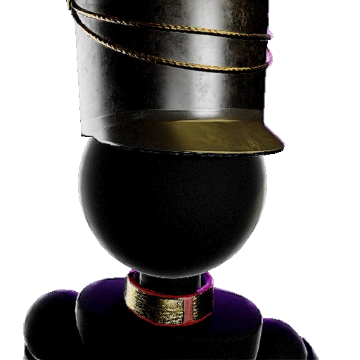 A hat advertised alongside the Nutcracker Outfit, featuring the classic nutcracker helmet, appearing to be a long, black hat with a type of string going across the center. |