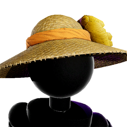 A hat advertised alongside the Swimsuit Girl Outfit, featuring a straw hat with a orange flower seen tied to the hat. |