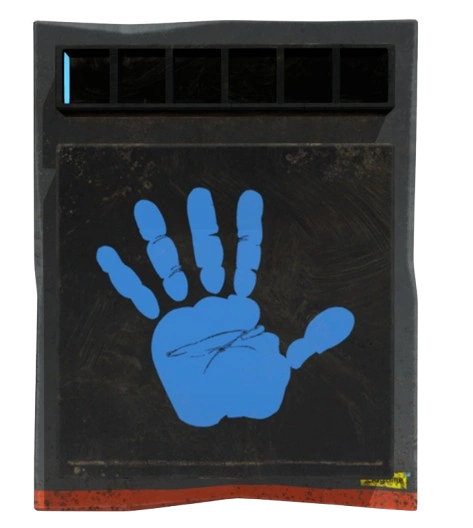 In The Shelf, long after The Player has lost the Red Hand, The Player finds a new one on the body of a dead guard and they use it on various Red Hand Scanners which unlock higher security areas. As they venture deeper into the prison, they find Blue Hand Scanner devices that allow them to open other doors in the facility.