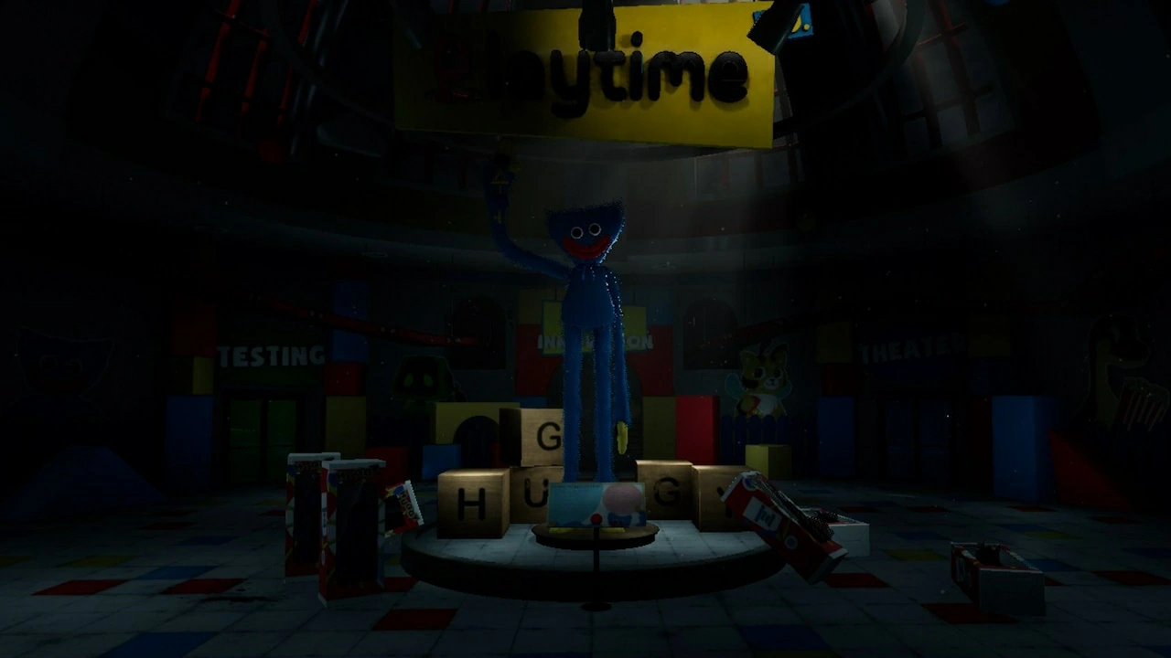 Using GrabPack's Blue Hand on a scanner, The Player can access the Lobby. Entering the area, they see Huggy Wuggy in the center, and among other closed rooms, there is only one accessible: the Make-A-Friend hallway. Using the Blue Hand on another scanner of the same hand, the power is abruptly cut off, and a key mysteriously appears in Huggy Wuggy's hand, and The Player picks it up using the Blue Hand. The key unlocks the door that accesses the Power Room, and then The Player enters to restore power.