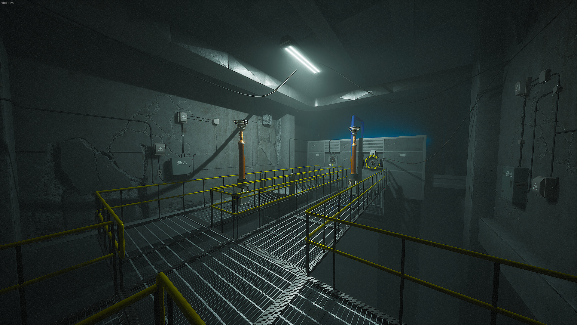 In order to open the Game Station hallway, The Player must turn on the power via the Secondary Power Room. To complete this puzzle, The Player has to connect one of their hands to the transmitter Power Socket on the left side, so the wall will not break off the wire. Then, they must go to the right side without having the wire hit the left Power Pole. Once at the right Power Pole, they wrap the wire around the pole, then walk to the right pole and they do the same. Then, they go back to the right and shoot their other hand to the inactive receiver Power Socket.