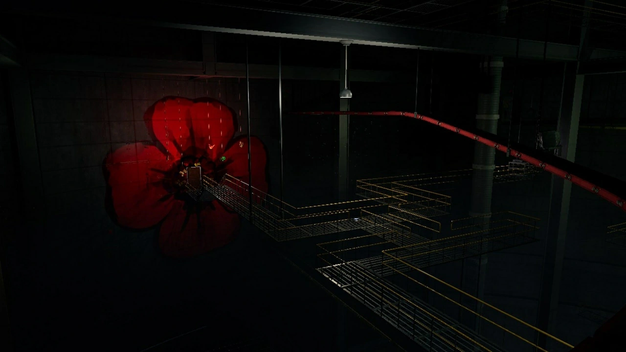 After being chased by Huggy Wuggy through the Conveyor Belt System, The Player ends up on a maze of industrial walkways. They then walk along the walkways towards the large Poppy flower painted on the wall until reaching the entrance to the Poppy Area.