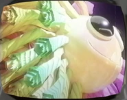 Yarnaby opening his face and revealing his mouth to The Player.